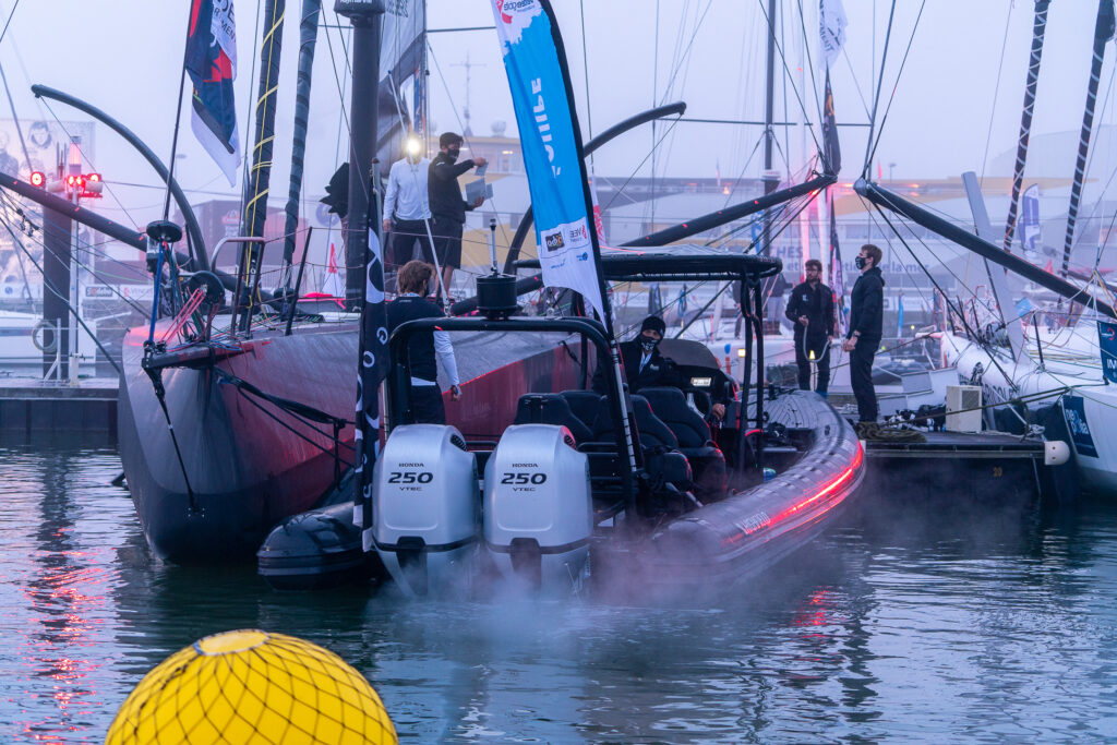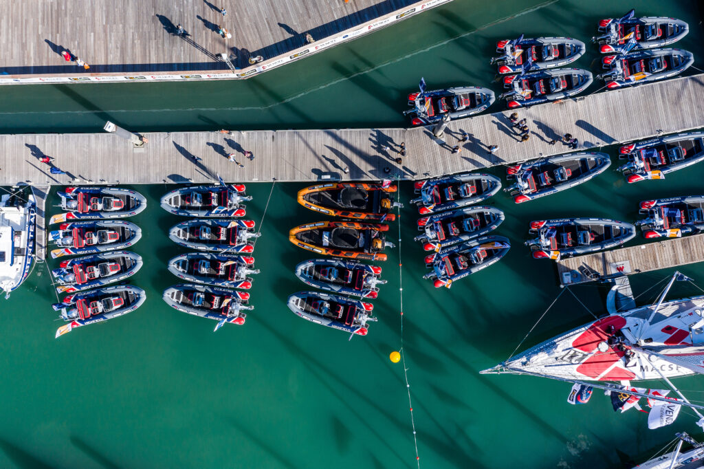 Highfield once again served as Official Supplier for the support/safety fleet. This time they delivered 46 aluminium-hulled RIBs ranging from 6.6 m to 8.6 m, powered by Honda outboards (150 hp up to new V6 250 hp models). These were delivered around mid-October to Les Sables-d’Olonne, and featured in the Vendée Globe village. The fleet had significant roles in preparing the start area, providing security up until the race start under challenging conditions such as sea mist or low visibility. As in 2016, the support was turnkey, coordinated with various partners (trailers, engine and navigation system suppliers) to meet specification, deploy the fleet, and ensure reliability.